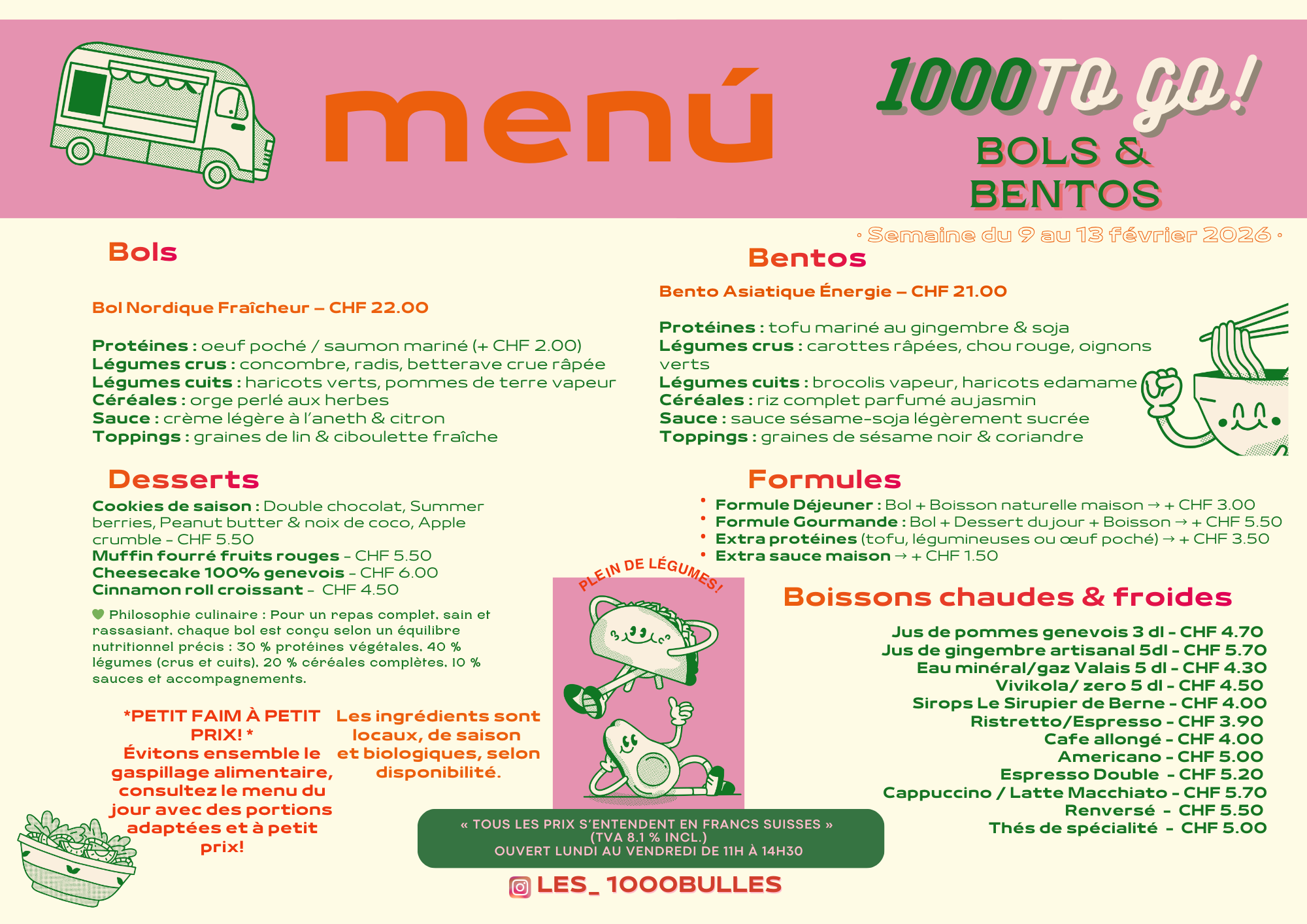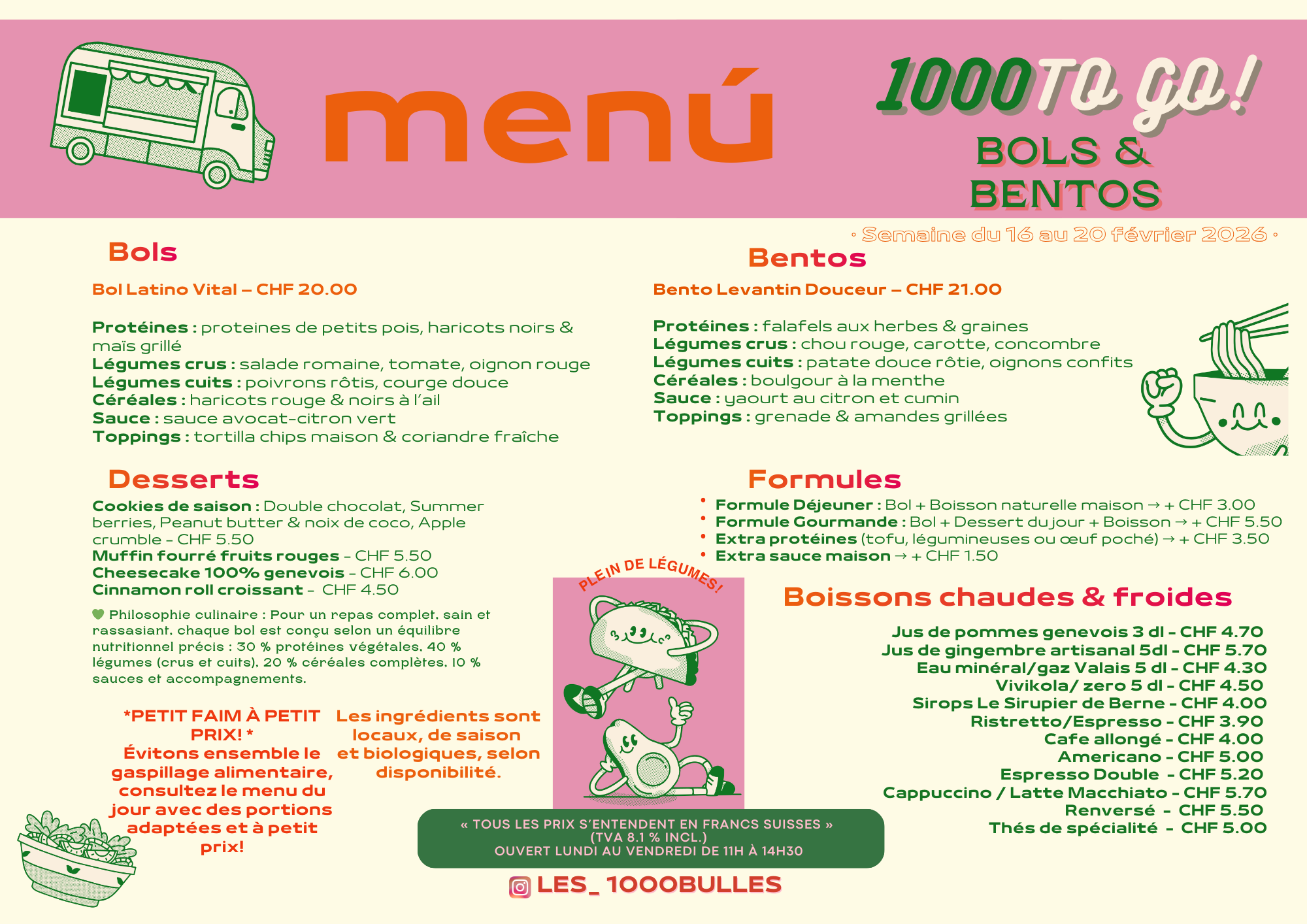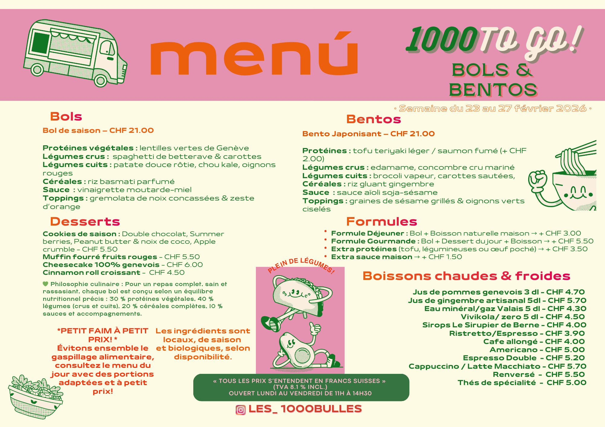 Le projet s’inscrit dans la continuité de 1000 Bulles - notre enseigne principale implantée sur la Place de Longemalle - depuis maintenant trois ans. Fort de cette expérience réussie, le food truck a pour ambition d’élargir la présence de la marque tout en conservant son identité : une cuisine saine, équilibrée et conviviale.